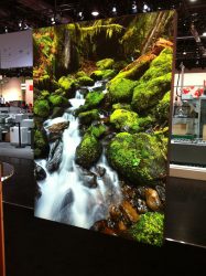 ‘Clients are waking up to the advantages – UV or latex print has to be rolled on a core for transport but textiles don’t and exhibition companies are looking for solutions that don’t get “travel sick”,’ he adds.