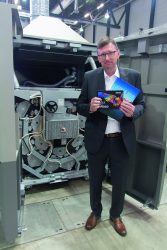 Christian Unterberger, chief marketing officer, told Digital Printer that flexibility of application would be key for high speed inkjets, including in litho replacement work. ‘There’s now new killer app for print. It’s the sum of many smaller apps,’ he said, adding that although global print volumes are growing, placements of presses are decreasing, leading to more applications per machine. Canon’s approach to media flexibility is via flood priming of papers, which Mr Unterberger says permits 200 to 300% total coverage, which ‘spot’ primer can’t support.