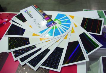 Scodix, now distributed in the UK by Hunkeler distributor Friedheim, was demonstrating its new Ultra 202 model launched earlier in the year. Its nine enhancement options include Cast & Cure which, by a process of film imprinting on the clear polymer that the units prints, allows diffraction and holographic effects to be achieved. Depending on the number of different effects treatments to be applied, the unit can run at up to 1250 B2 sheets per hour.