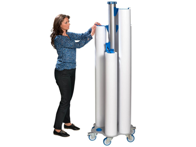 Stock & Roll, a compact, portable roll storage solution for handling and transporting rolls for large-scale digital printing, is now stocked by Antalis.