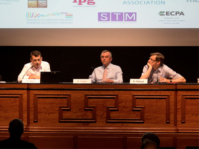(L-R) Paul Major, global senior procurement manager, Oxford University Press; David Taylor, senior vice president, Content Acquisition International, Ingram Content Group; Richard Fidczuk, production director, SAGE Publications.