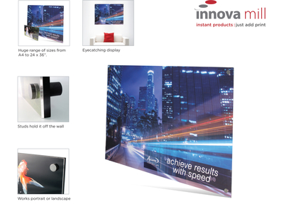 The product is an acrylic wall display, which uses a patented design to turn printed images into high quality displays quickly and with no mess. The display can be assembled in 60 seconds with no set up cost or equipment and can add value to the printed product.