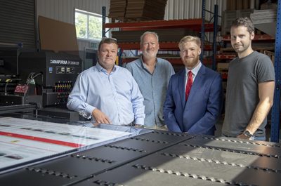 (L-R) Paul Smith, MD, PrintBig; Paul Abson, sales director, PrintBig; Henry Stevens, Agfa, and Joe Woolley, production manager, PrintBig PrintBig, a design and print…