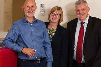 Darren Horrox (left) with Agfa Graphics’ Barbara Cooper and Dave Cross Agfa’s Apogee Cloud online workflow is being used to manage multiple print sites…