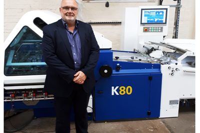 Kevin Lee, operations director, Deanprint with the MBO K80 Cheshire-based printer and book binder Deanprint has installed England’s first MBO K80 full automatic combination…