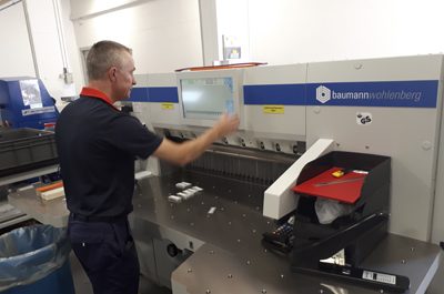 Mark Hawkins, finishing team leader with the 115 guillotine Lincolnshire based garments decorations manufacturer, J & A International has installed its second BaumannWohlenberg 115 high…