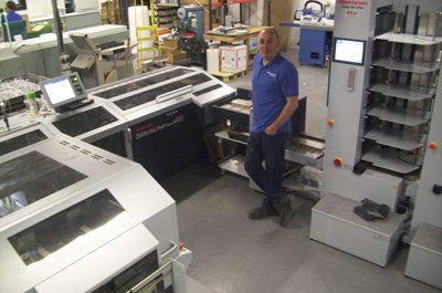 (L-R) Jonathan Mills, managing director, and Mark Stephens, production manager, with the Horizon AFC-566FG Cardiff-based Allens Printers has invested in a B2 Horizon AFC-566FG…