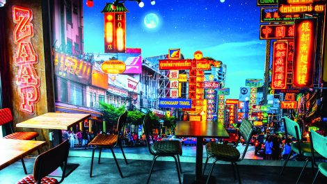 Imageco has deployed a backlit textile produced from 100% recycled PET plastic bottle waste to decorate the interior of a Thai restaurant.