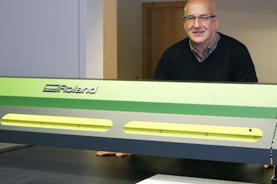 Andrew Owen with the Roland S-series – bigger is better The first installation of a Roland S-series hybrid UV printer in Wales, at Genesis…