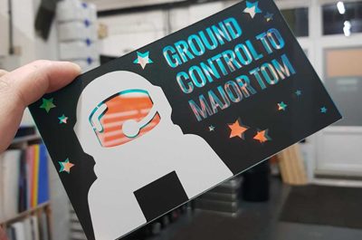 ‘I love the white ink and the surface textures possible with printing layers of gloss UV ink.’ – Chris McGee, managing director Lasercut.London has…