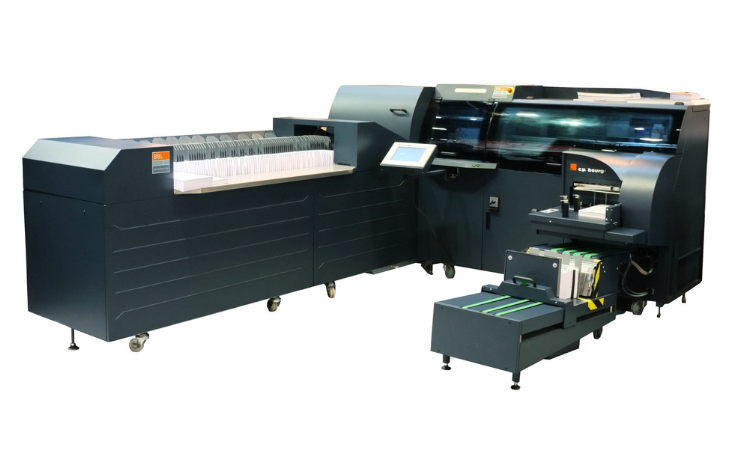 If a BSF Sheet Feeder is run inline it can also accept stacks from other printers. An inline Bourg Preparation Module (BPM) can accept larger sheet sizes and trim them down; and a second BPM inline can give four-up impositions. Throughput is 600 cycles or about 400 books per hour. Encore Machinery distributes CP Bourg in the UK.
