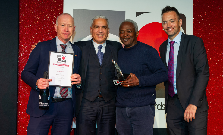 Once lunch was over, it was down to the main event. Hosted by Sky Golf presenter Nick Dougherty, the atmosphere was jubilant as one-by-one the winners of the awards came to the stage to collect their trophies. It was then the big one, the supreme winner, sponsored by Premier Paper. As Mr Dougherty read the winner, F.E. Burman, for its Fedrigoni 366 2024 entry, Paul Regan, sales director and Ade Onabanjo, production director at F.E. Burman re-entered the stage to collect F.E Burman’s second award of the night.