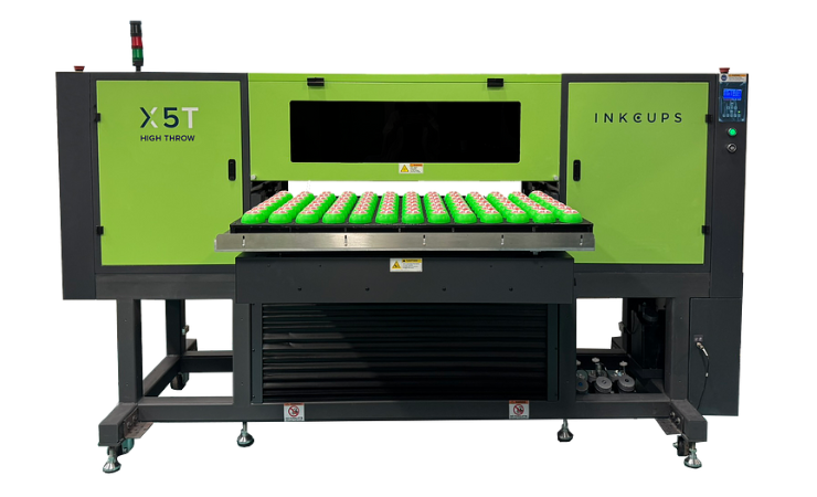Direct-to-object printing specialist Inkcups will introduce an update to its X5-T flatbed UV printer at this year’s Fespa event in Berlin. The new ‘High Throw’ feature allows for a greater distance from the printhead to the substrate. This enables high-quality prints on contoured, curved, or irregular surfaces such as mugs with handles and tiered drinkware.
