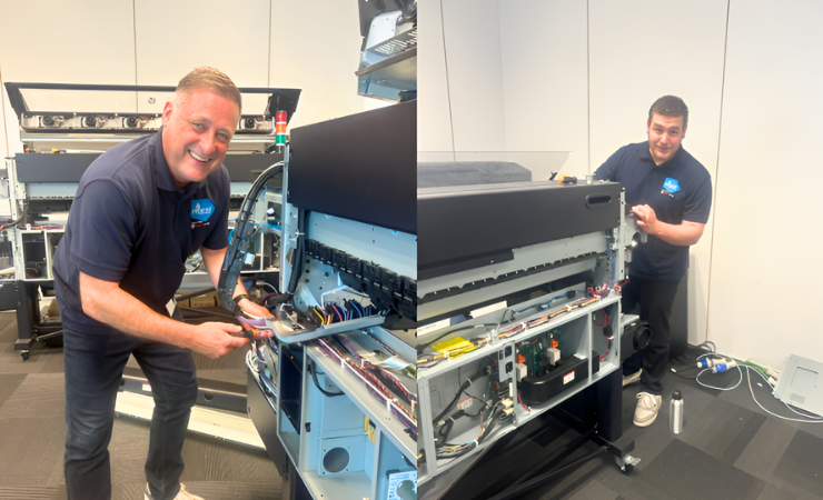 Carl Birchall and Cole Appleby completed the five-day course, which covered key technical competencies required to support HP’s Latex roll-fed printers. These included mechanical and electronic system setup, printhead calibration and maintenance, media handling for optimal quality, firmware diagnostics and updates, and adherence to HP’s safety and environmental standards.