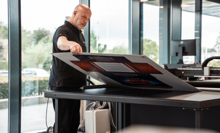 The loading table is designed for rigid substrates but can be swapped for a roll feeder to accommodate flexible materials, supporting faster changeovers. The unit can be configured in both portrait and landscape orientations, depending on production needs.