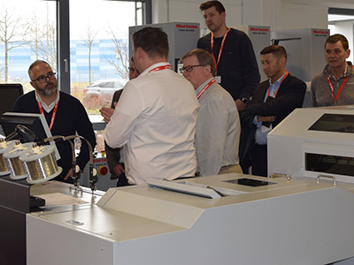 UK printers discuss the StitchLiner Mark III at the Horizon showroom