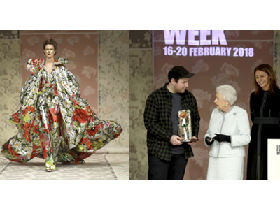 Her Majesty The Queen presented Richard Quinn with the Queen Elizabeth II Award for British Design at the end of his spectacular London Fashion Week catwalk.