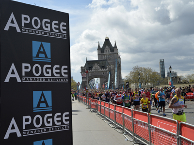 ‘The team at Apogee provided an excellent service at this year’s [2017] Virgin Money London Marathon,’ said Hugh Brasher, event director. ‘The planning and attention to detail were excellent, the results books looked fantastic and the Apogee team went the “extra mile” to make sure everything went according to plan. We look forward to working with them again in 2018.’