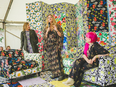 The Wardrobe Department stage used to host fashion interviews during Port Eliot Festival featured furniture, wall coverings and flooring covered in floral designs printed using Epson SureColor wide-format printers.