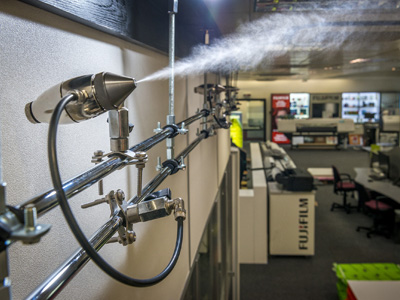 The JetSpray has been installed to control the RH (relative humidity) in Fujifilm’s demonstration area, which incorporates the latest Jet Press 720s.