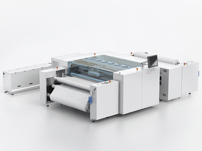 The first machine is the Mouvent TX801 for textile printing, a 1.8m print width 8-colour design that uses a multi-pass scanning mechanism with reactive inks for direct printing at up to 200sqm/hr. There will be further models to follow for the textile sector, promising performance improvements. The other machines presented at the launch were narrow web label presses that will be launched at Labelexpo.