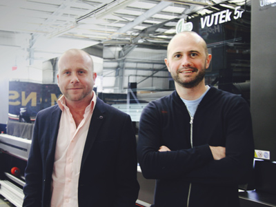 Simon McKenzie, managing director of Hollywood Monster (L) and Mat Jephcott, operations director with their new EFI VUTEk 5r printer