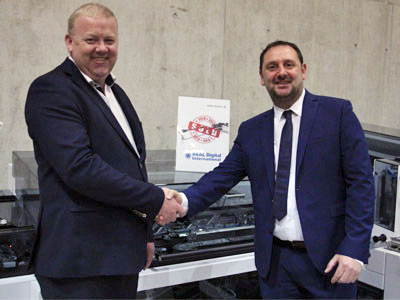 (L-R) Barry Stephens, production director, REAL Digital International and Andy Wain, UK senior account manager, Böwe Systec, at Hunkeler Innovationdays 2017