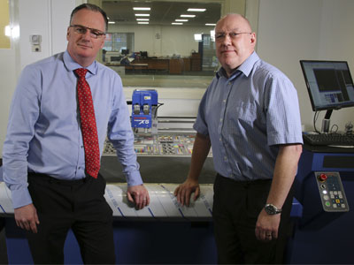 Joint MDs at Quantum, Giles Foden (L) and Peter Thomas with the DYSS digital cutter
