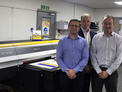 (L-R) Phil Knight, Falconer pre-production manager; Steve Beswick, sales manager for wide format products at Production Print Direct; Richard Martin, Falconer MD