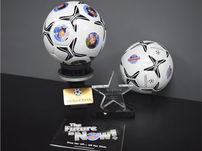 ‘We recently produced some personalised balls for a local football club decorated with 18 team member photos which was very well received and offers a great business opportunity for those in the awards and recognition market to develop over the coming months and years,’ commented Jim Nicol, managing director.