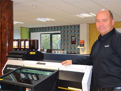 Stuart Cole, Hybrid’s national sales manager, industrial products, with the new Mimaki UJF-6042MkII printer in the company’s showroom