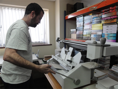 Wesley Urban, print manager, with the Fastbind Casematic casemaker from Ashgate