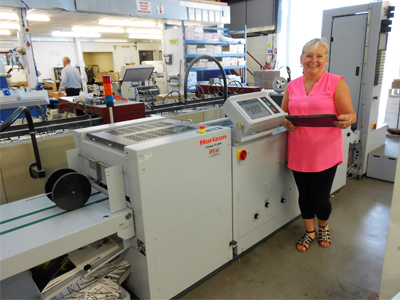 Healeys’ bindery team leader Sharon Allum on the Horizon SPF/FC 200L