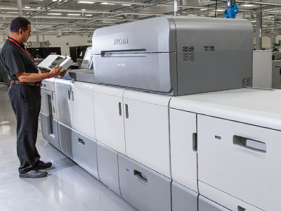 The Ricoh Pro C9110 will take produce high volume work, while the fifth colour unit on C7110x will be used to offer added value effects. The new machines replace a Ricoh Pro C901.