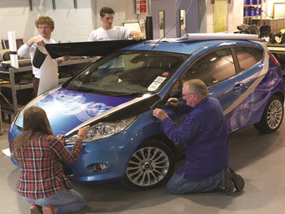 Oxford Brookes university students wrapping a Ford Fiesta with Metamark MD-X Cylinder cast film