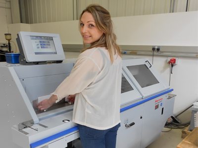 Operator Rachel Peak with the Horizon BQ270V single-clamp perfect binder