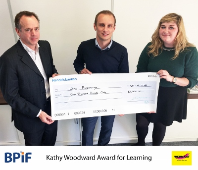 He received the £1000 award from current BPIF chief executive Charles Jarrold and Webmart representative, Rebecca Lambrianou at the BPIF’s offices in London.