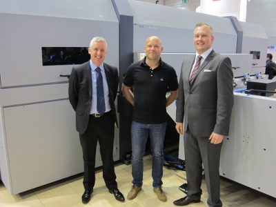 From left: Durst UK’s Peter Bray, Delta’s Martin Shipp and Durst’s Matt Ashman at the signing on the Durst stand at Fespa.