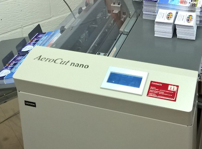‘The AeroCut is especially useful for business cards, and also useful just cutting two-up leaflets to size. We have this machine sitting next to the digital print engines so that we can just take the printed jobs and finish them immediately. Again, it’s a product that anyone can use – you don’t need to be a skilled guillotine operator to produce business cards with the AeroCut – and it’s fast too,’ commented Mr Reynolds.