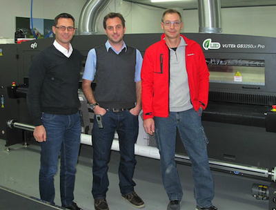 (L-R) André Stutz, Marco Schuhmacher and Herbert Voser with their fourth VUTEk printer.