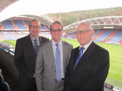 From left: Andrew Toothill, Enterprise Print, John Williams, Huddersfield Town FC, and Philip Stead of Enterprise Print, at the football club’s John Smith Stadium.