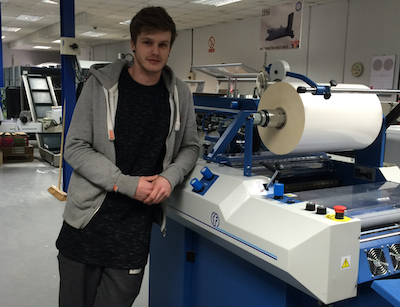 Lewis Quinlan, operator, with the Foliant Taurus laminator