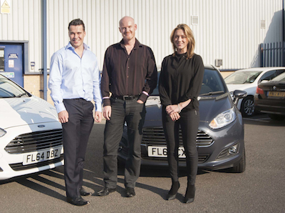 Andrew, Neil and Jade in front of their company vehicles and FastAnt’s digital and mailing production facility in Leicester