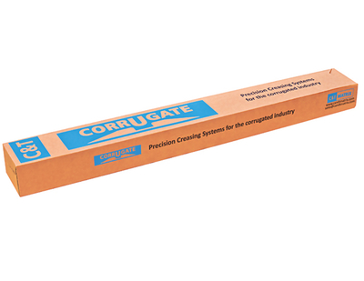 Corrugate reduces knuckling by creating a holding form in which to crease, the result is an increase in accuracy and definition to the crease and the overall appearance is improved. Corrugate has a wider base than traditional products, resulting in stronger adhesion to the plate, reducing movement and improving registration. This wider base also helps to cushion the impact of the crease. The improved edge on the creasing matrix and shallower angle of the chamfer helps to overcome problems such as poor run ability of the board and blocking in the machine caused by folding thicker boards.