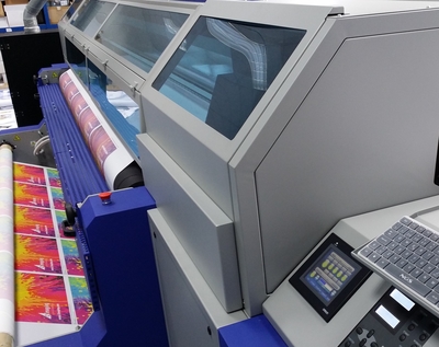 The new printer offers an all in one direct to textile solution, printing up to 1440 dpi and speeds up to 58 msqr/h direct to textile using a vibrant water-based ink set. The textile is then advanced to the inbuilt fixation unit where it sublimates into the fabric.