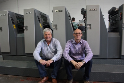 Joint managing directors Glyn Johnson (left) and Dan Brook (right) pictured in front of the new Hans Gronhi press.