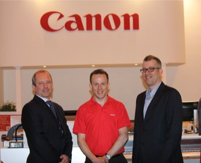 Canon account manager Andrew Day (centre) with C3imaging manager director Nigel Davies (left) and C3imaging branch manager Albert Penninkhof at Sign & Digital UK 2013