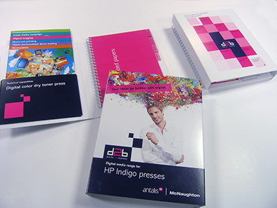 Accompanying this is a pair of Digital To Business paper swatches intended to help show printers which material to chose for best results. These swatches are for HP Indigo presses and dry toner presses.
