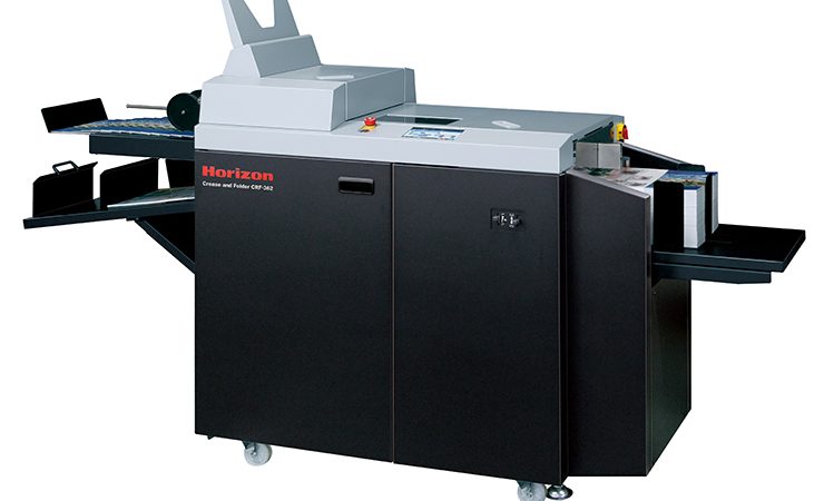 The Horizon CRF-362 creases and folds in one pass a wide range of light and heavy weight stocks, coated or uncoated. Capable of up to ten crease lines on a sheet, it uses an impact scoring technology that eliminates or minimises cracking of the stock or printed image. Set-up and changeovers are completed on the high resolution intuitive colour touch screen.