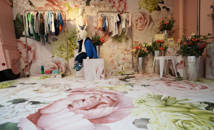 The Chatham-based digital printer covered every surface with a series of floral graphics, creating a bespoke English flower-garden concept, designed by Harrods.
